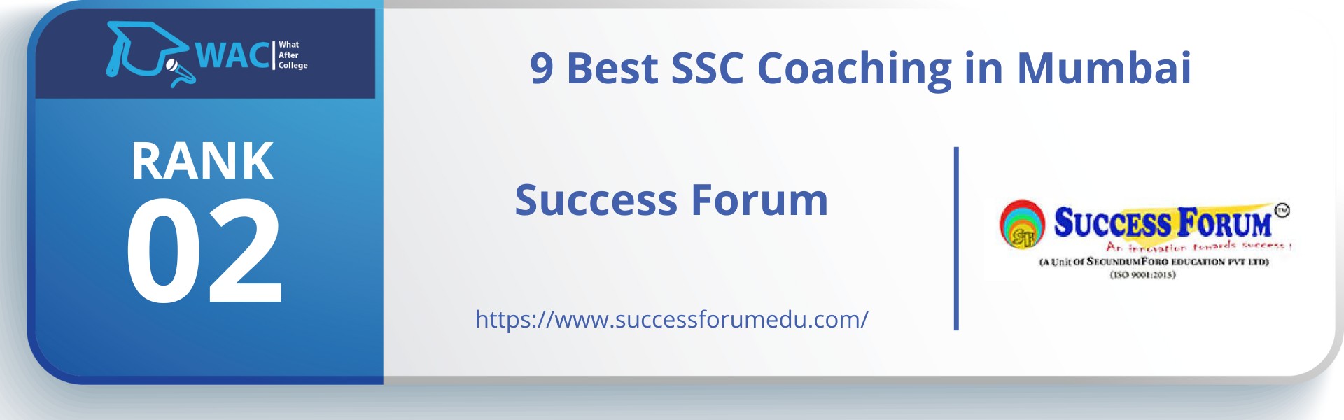 Founded in the year 2009, Success Forum is a popular coaching center for SSC JE coaching in Mumbai. Founded by a group of experienced professionals, the institute focuses on providing practical training to the students to make sure that they are able to use their knowledge and skills in the real world. It offers updated notes and books to the students to help them with their preparation.