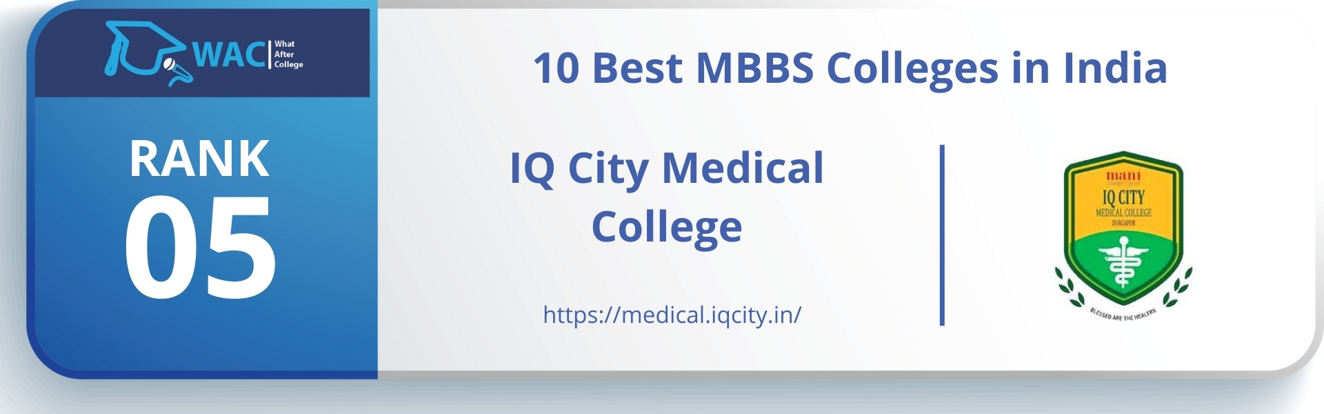 10-Best-MBBS-Colleges-in-India-Rank-5_-IQ-City-Medical-College Published October 19, 2022 at 1920 × 600 in 10 Best MBBS Colleges in India | Enroll in the Top Medical Colleges in India In 2013, IQ City Medical College, an established, non-profit institution with advanced facilities and world-class educational methods, was opened with a 150-student capacity, to serve students with an MBBS degree program and an MD/MS program. ← Previous Next →
