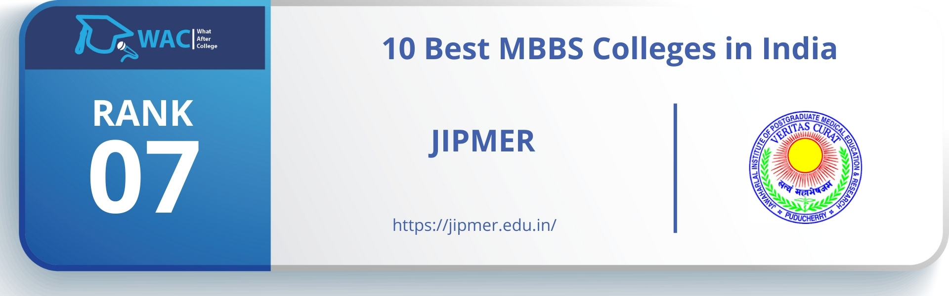 10-Best-MBBS-Colleges-in-India-Rank-7_-JIPMER Published October 19, 2022 at 1920 × 600 in 10 Best MBBS Colleges in India | Enroll in the Top Medical Colleges in India JIPMER is one of the top medical institutes which produces most doctors, dentists, and pharmacists in India. Established on 1 January 1823; 199 years ago. ← Previous Next →