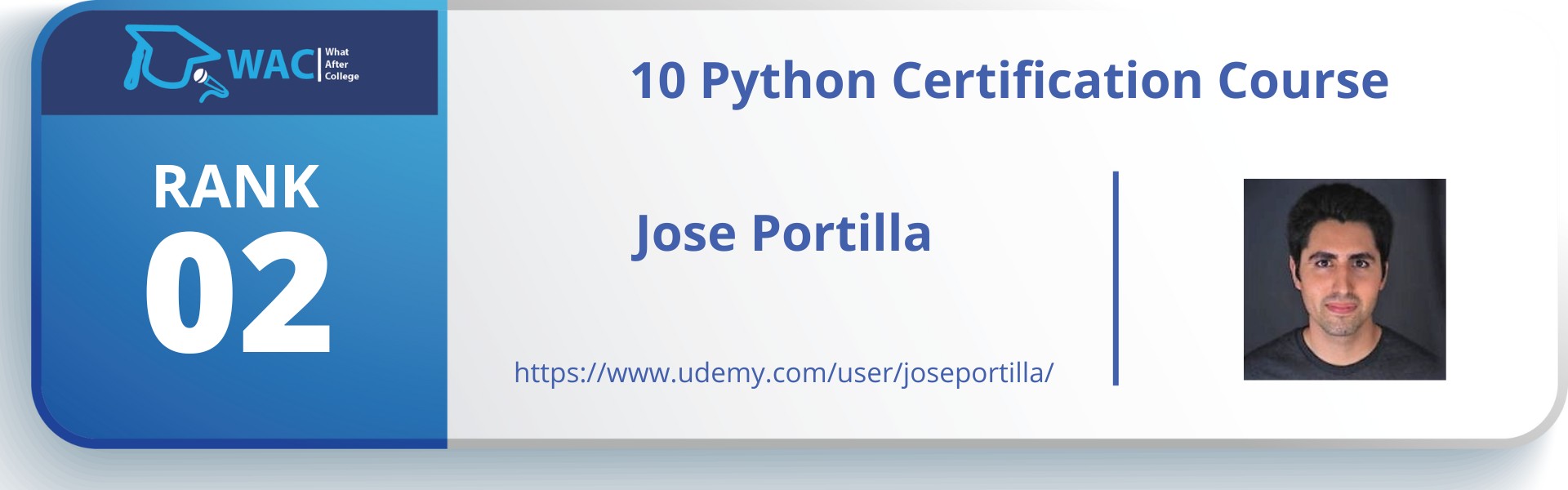10-Python-Certification-Course-Rank-2_-Jose-Portilla Published February 23, 2023 at 1920 × 600 in 10 Python Certification Course | Enroll In Best Python Online Course Certification This course is designed for absolute beginners who have never written a line of code before, as well as experienced programmers who want to learn Python. ← Previous Next →